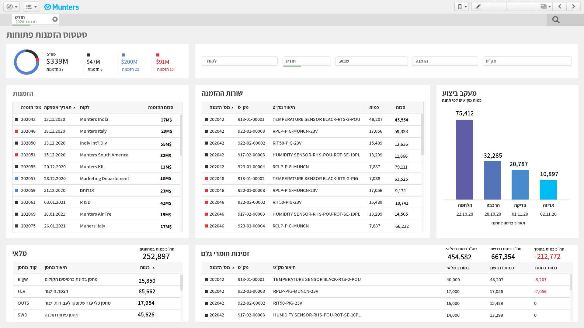 Also, the production manager was now allowed for the first time to move from the BI system directly to the specific order line in Priority after identifying an irregular order and handling it. As a result of the process, the work of the production manager has been significantly streamlined and so has the productivity of the organization.